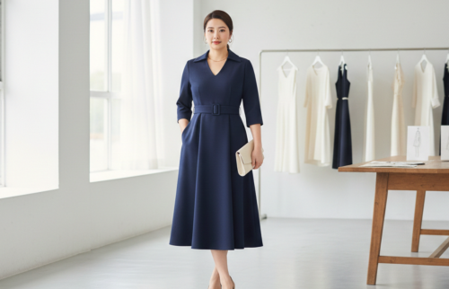 - สีโทนอัญมณี (Jewel Tones): เช่น สีม่วงเม็ดมะปราง, สีเขียวปีกแมลงทับ, สีน้ำเงินกรมท่า หรือสีแดงทับทิม สีเหล่านี้ช่วยให้ลุคดูแพงและช่วยพรางหุ่นได้ดีเยี่ยมในงานกลางคืน